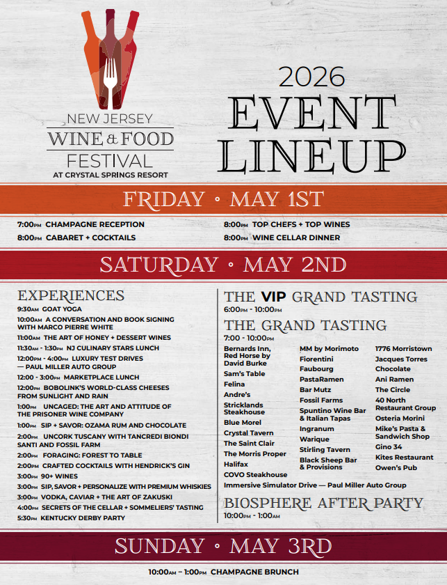 The culinary sensation of the year features 200+ tastings from leading wineries & distilleries, dozens of celebrated New Jersey chefs’ signature dishes plus extraordinary live entertainment and dancing.