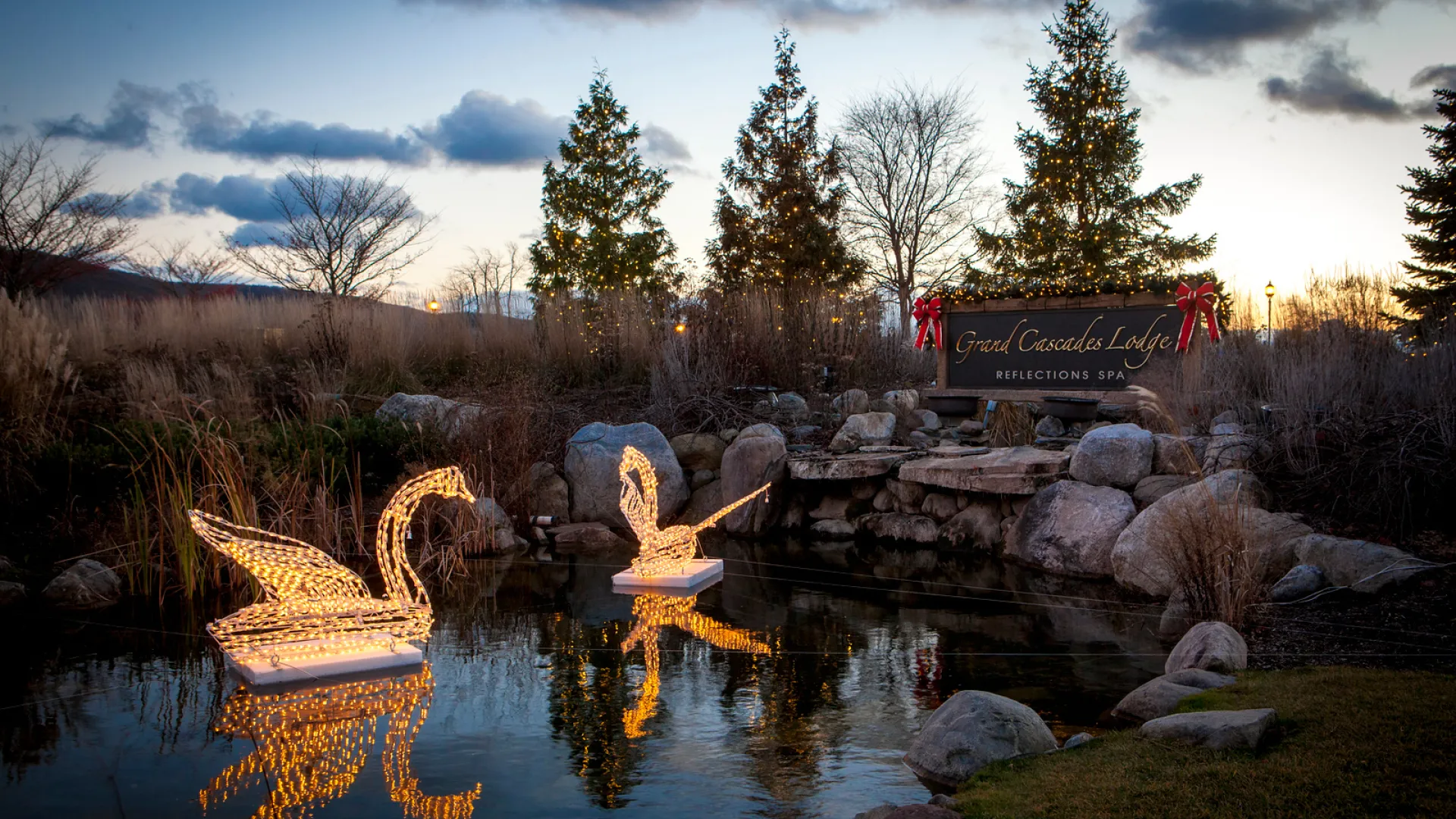 The holiday Light Hunt is a fun scavenger hunt where guests search for animal lights that are hidden outdoors around the property. Hosted at Grand Cascades Lodge.