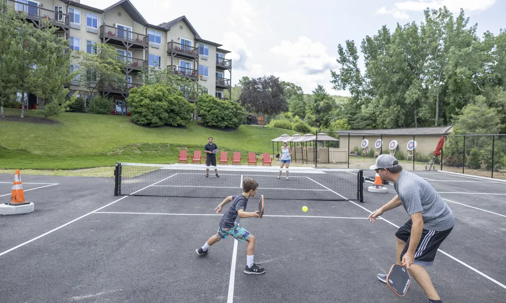 Come play the fastest growing sport in America - now at Minerals Hotel! Pickleball is a cross between tennis & ping-pong and is ideal for any age and athletic ability. Matches can be played by singles or doubles. Minerals Hotel offers three courts which are available for Minerals Sports Club members and guests of both of the Resort's hotels.