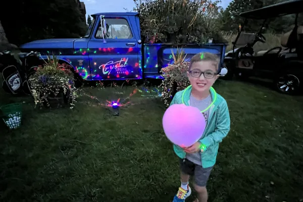 Child with glow cotton candy at Crystal Springs Resort.